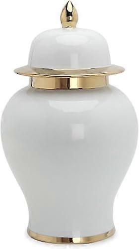 White Ceramic Ginger Jar with Lid Elegant White Finish for Home Decor and Floral Arrangements