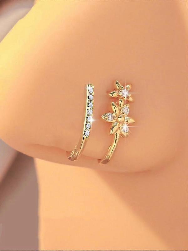 No Piercing U-shaped Nose Clip, Rhinestone Flower Cubic Zirconia Decor Nose Ring, Fashion Body Jewelry for Women & Men, Daily & Party Jewelr