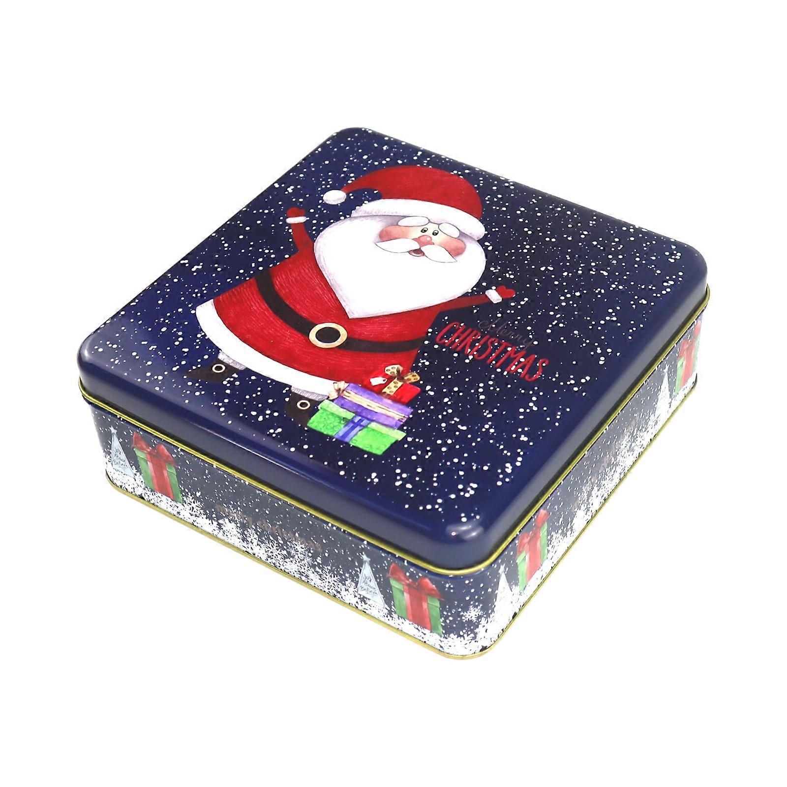 Square Christmas Cookie Tin with Lid, Festive Santa Claus Container for Holiday Treats and Gifts (Purple)