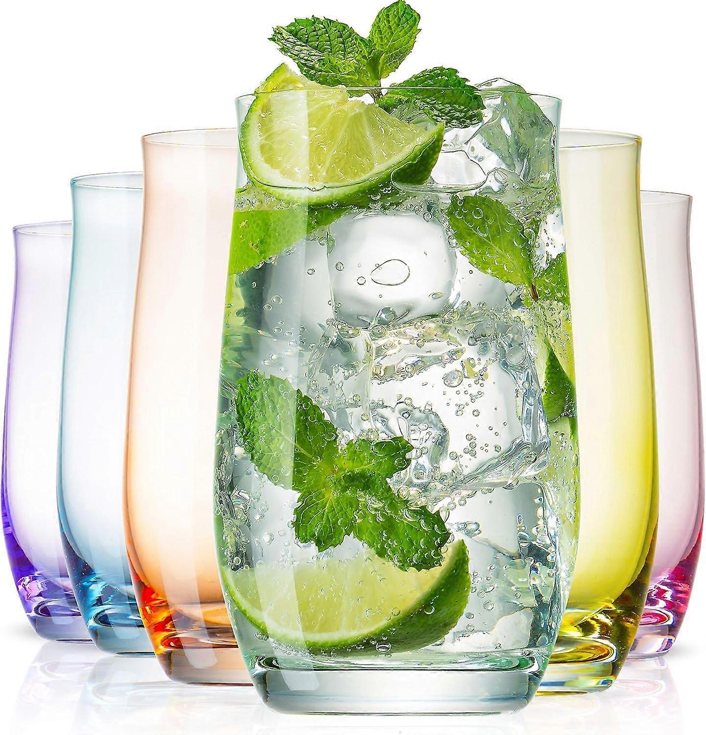 Set of 6 Colored Drinking Glasses, Vibrant European Highball Glassware, Dishwasher Safe