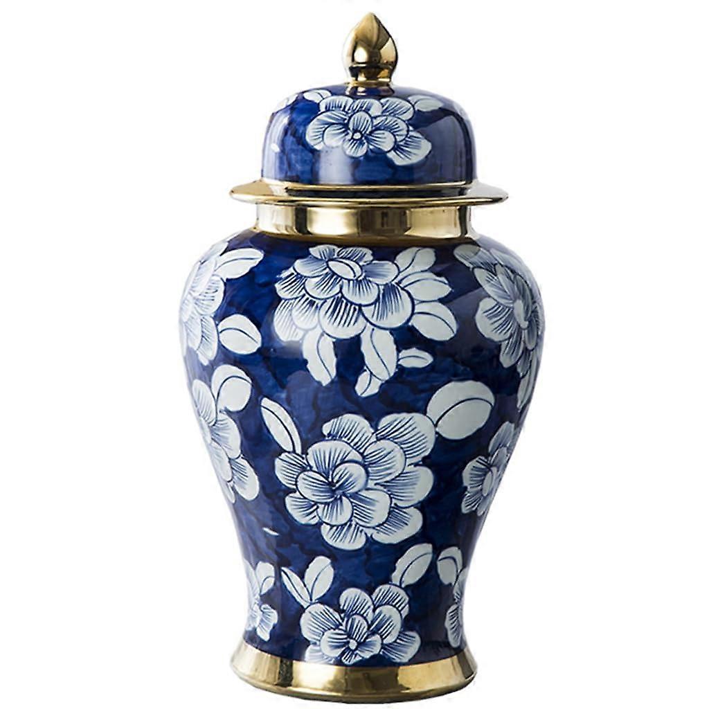 Blue Ceramic Chinese Style Ginger Jar with Lid Porcelain Vase for Living Room and Dining Decor
