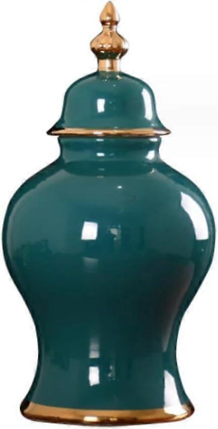 Green Ceramic Ginger Jar with Lid Antique Decorative Storage Jar for Home Decor 26x48cm