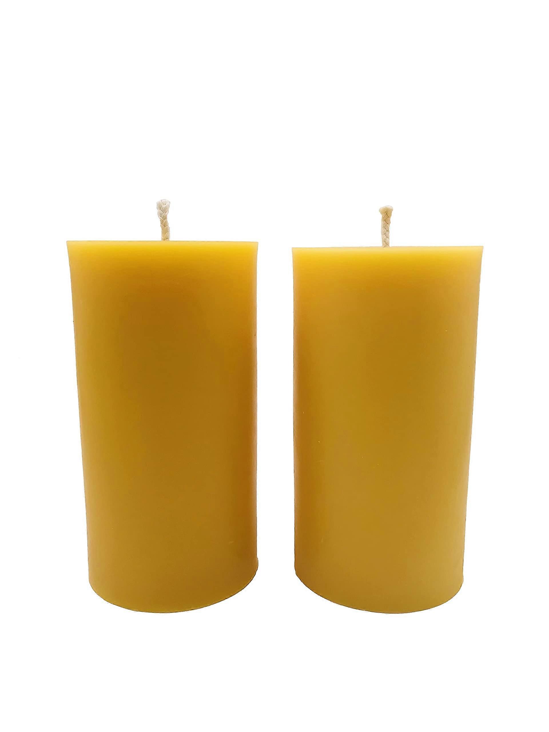 2 Pack Large Beeswax Pillar Candles 3x6 Inch Pure Natural Long Burning Clean Dripless Honey Scent