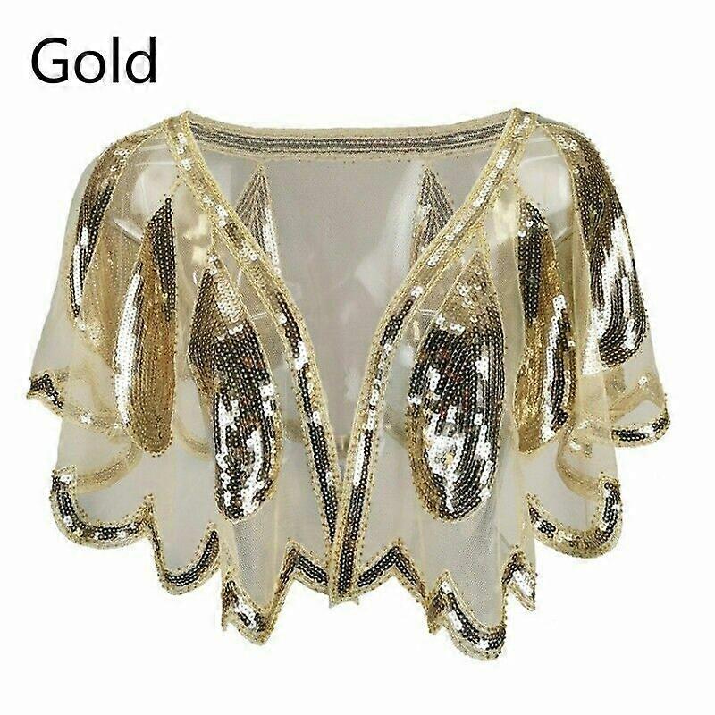 Lady Retro Sequin Cape Sheer Lace Shrug Bolero Shawl Evening Prom Cardigan Top