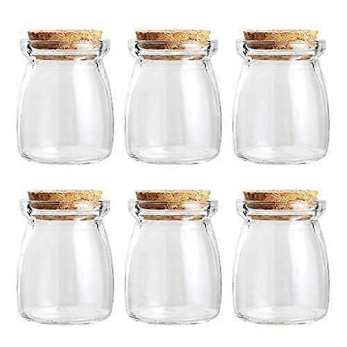 Glass Bottles with Cork Stoppers, Vintage 100ml Pudding Design, Clear Storage Jars 6 Pcs