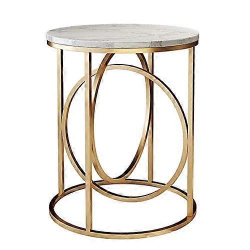 Marble Side Table Round Coffee Table with Golden Iron Frame for Living Room or Bedroom 40x60CM White