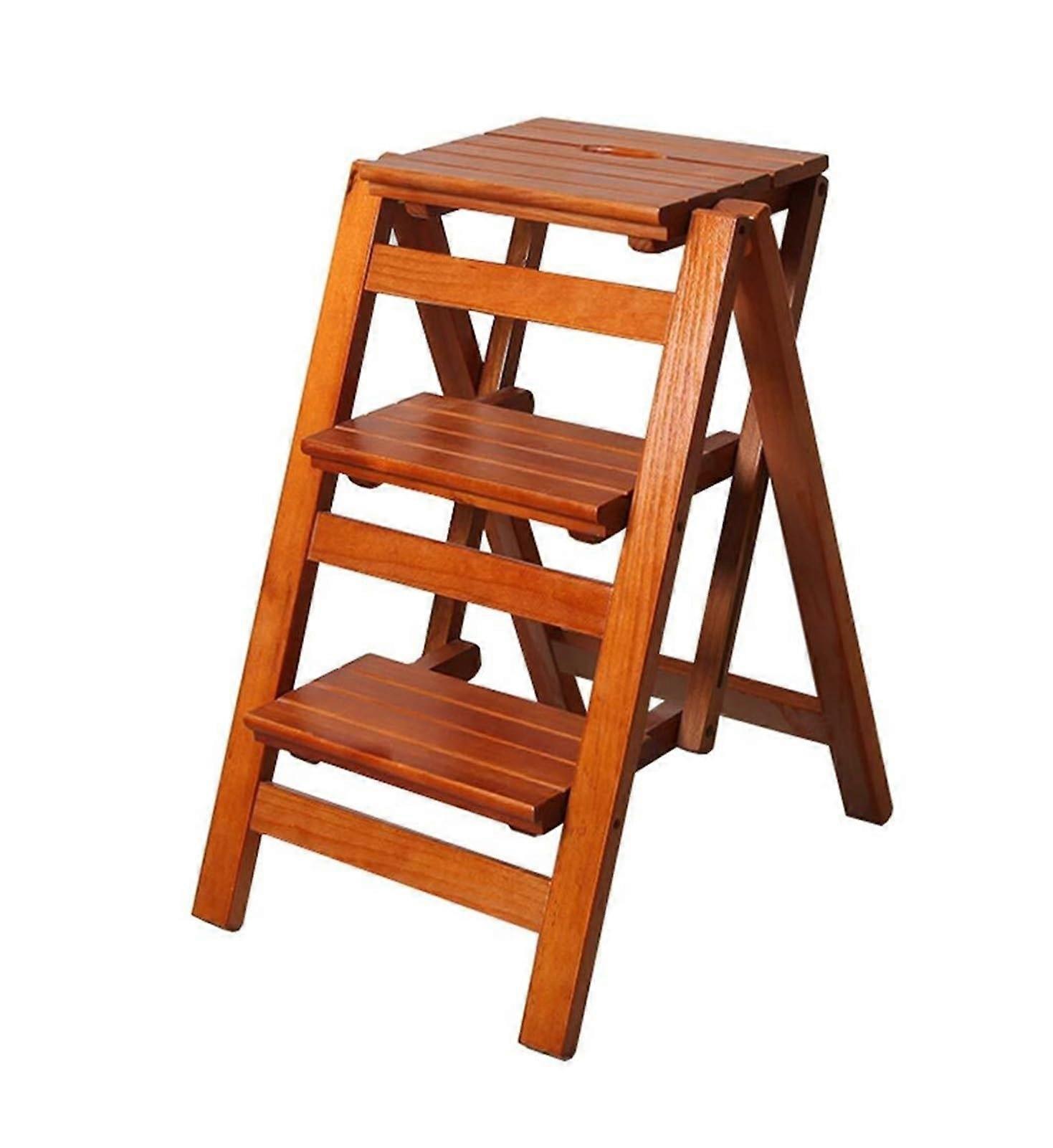 Wooden Folding Step Stool 3Step Solid Wood Ladder Chair with Wide Steps for Kitchen and Library
