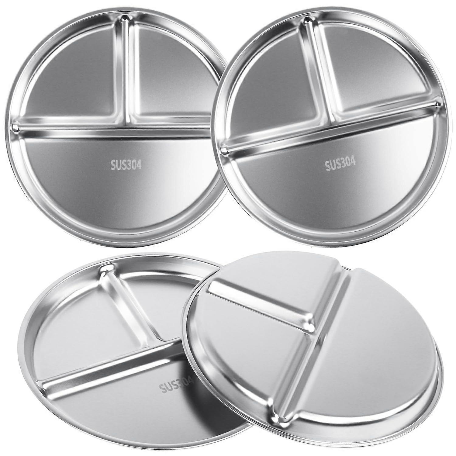 Stainless Steel Divided Plates 4 Pack 9in Portion Control Design for Camping Picnic and Home
