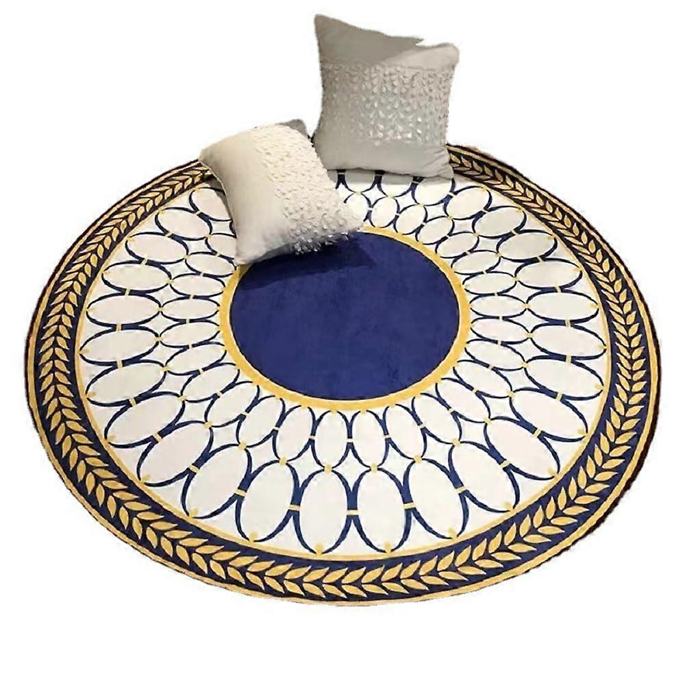 Round Floor Mat Bohemian Geometric NonSlip Absorbent Rug for Living Room Bedroom Gold 80x80cm
