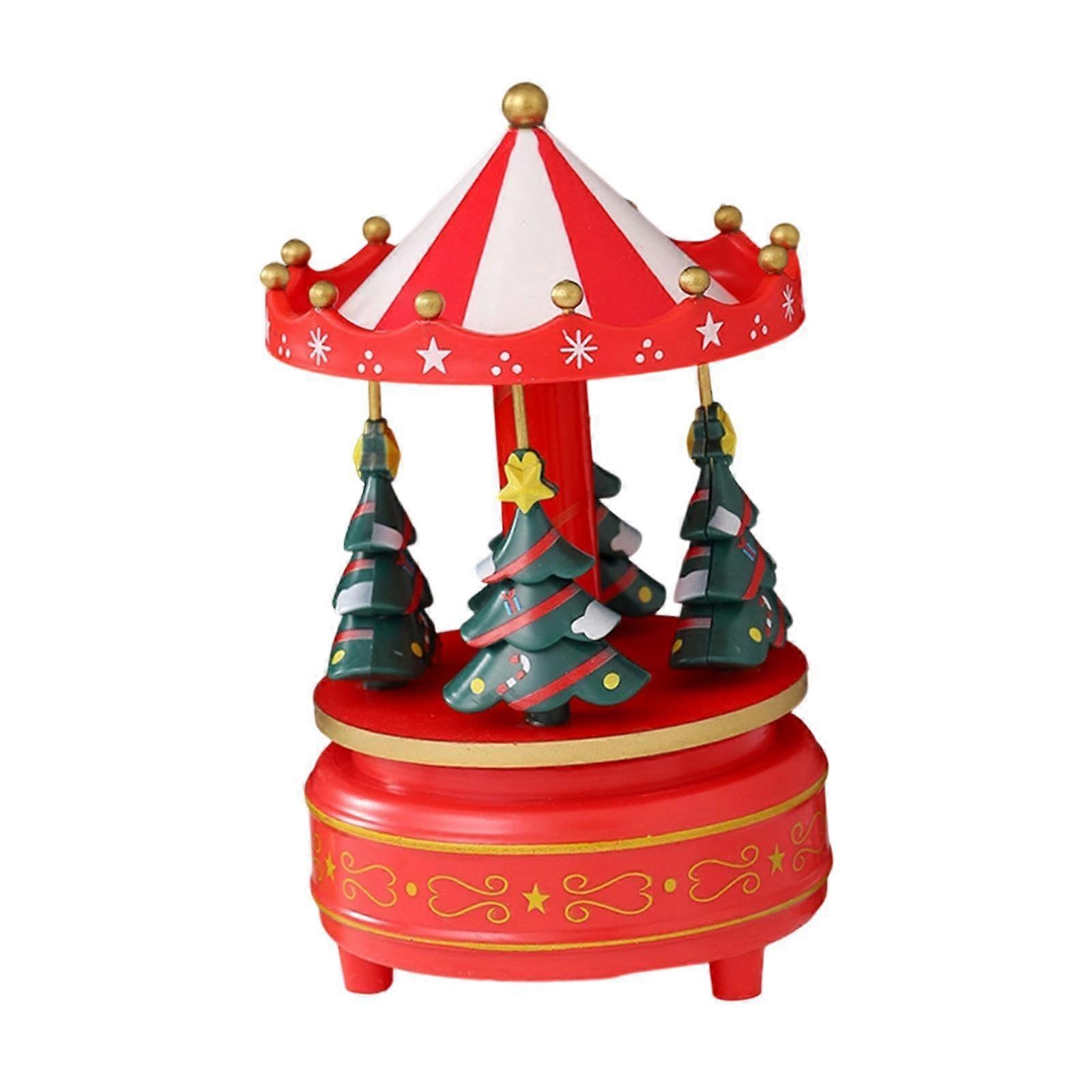 Christmas Carousel Music Box with Hand Painted Wooden Rotating Display Windup Mechanism Style E
