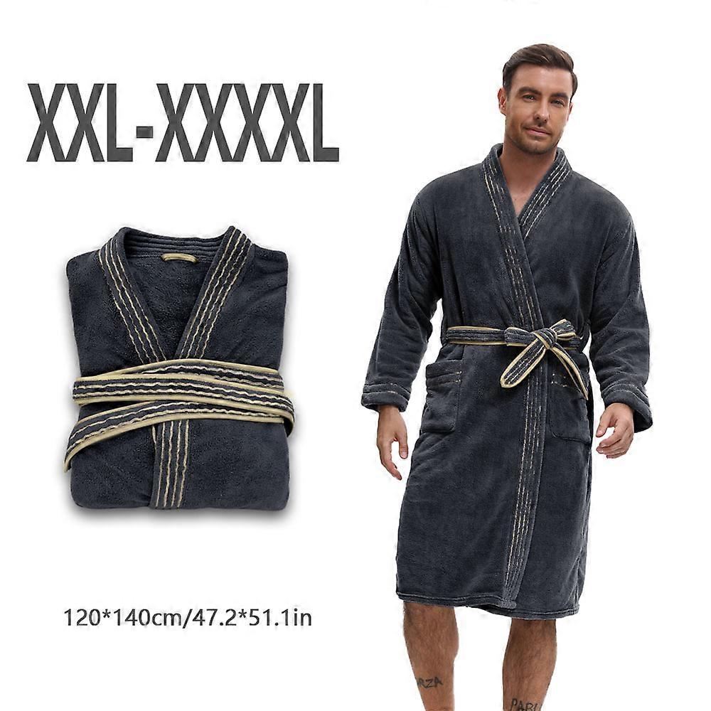 Men's elegant solid color long velvet thick robe set, absorbent long bathrobe dress with pockets, close fitting underwear, home
