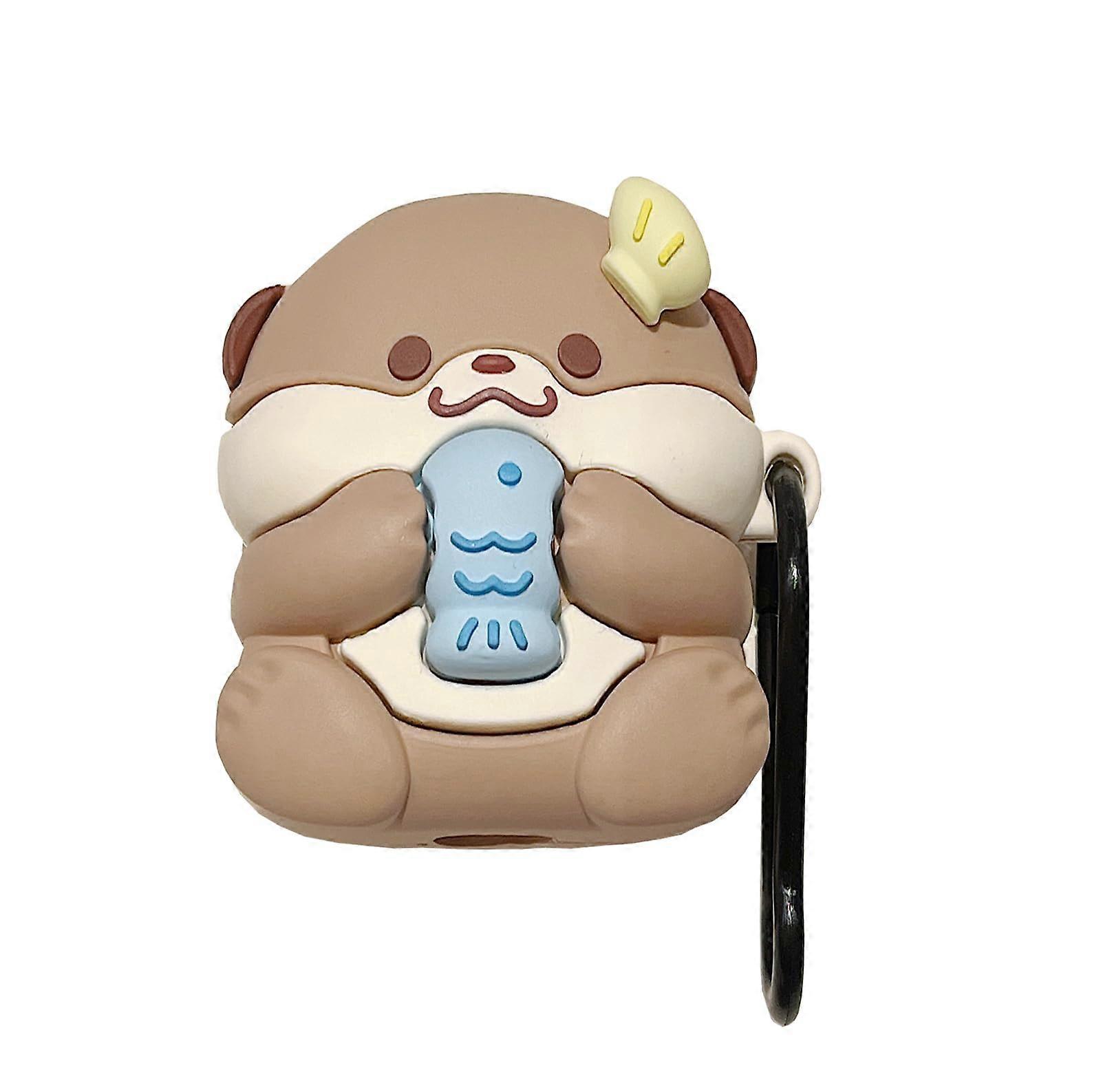 Case for AirPods 1st 2nd Generation, Cute 3D Otter Baby Soft Silicone Cover with Keychain for Boys Girls Women