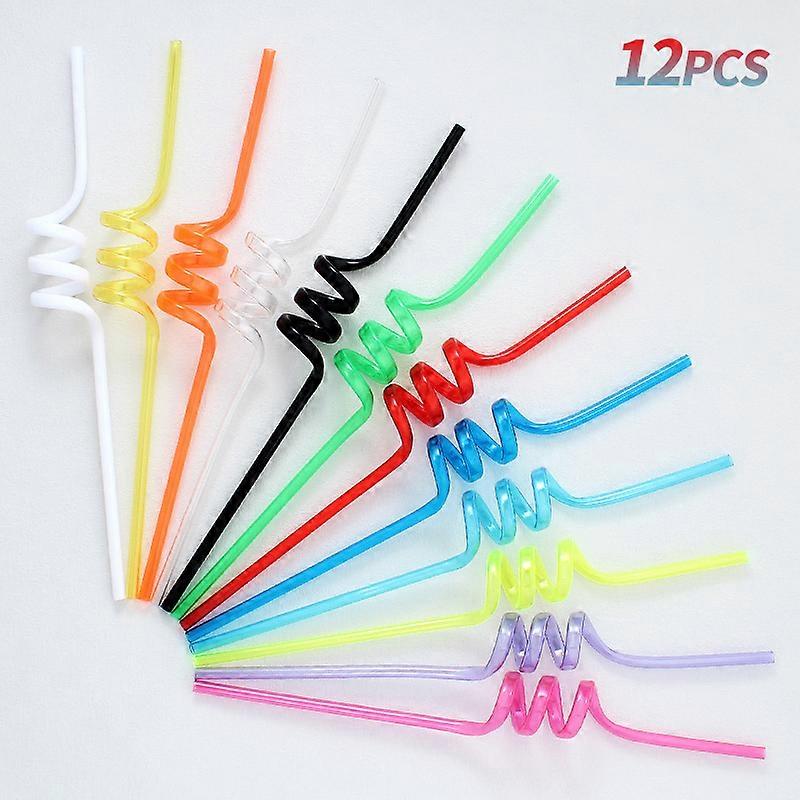 12pcs Straw Colorful Reusable Spiral Plastic Drinking Straws, Funny Straws for Birthday Party Wedding Parties Supplies, Christma