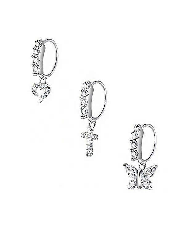 Women's Stainless Steel Nose Rings Set, Cz Butterfly Cross Design, Daily Wear Jewelry for Women, Soft Cartilage Earrings & Lip Piercing