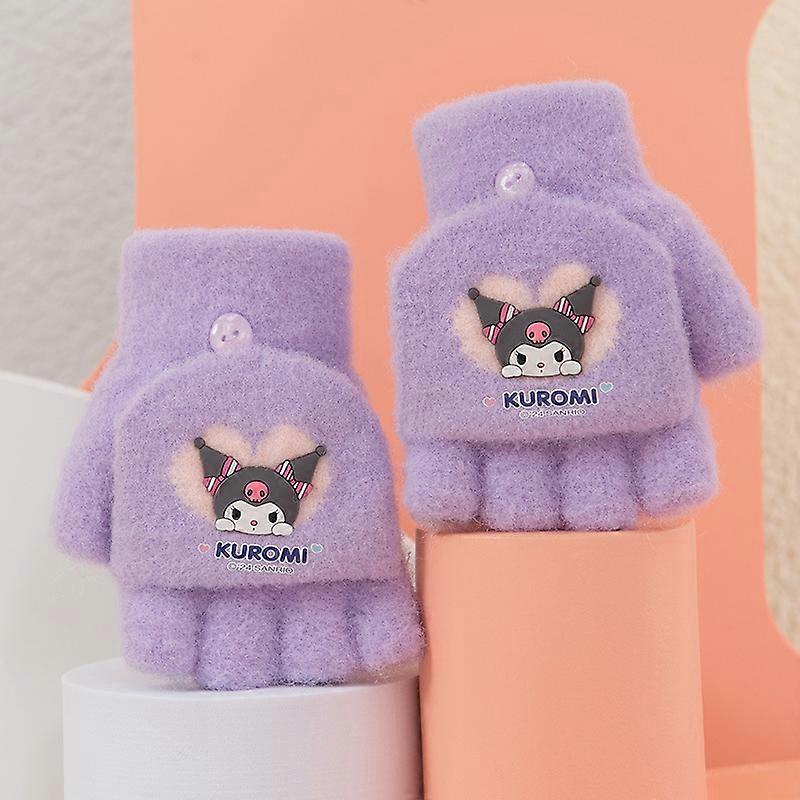 Sanrio Children's Glove 7-12 Years Old Boys Girls Half-finger Flip Gloves Cartoon Kuromi Cinnamoroll Warm Student Gloves Gifts