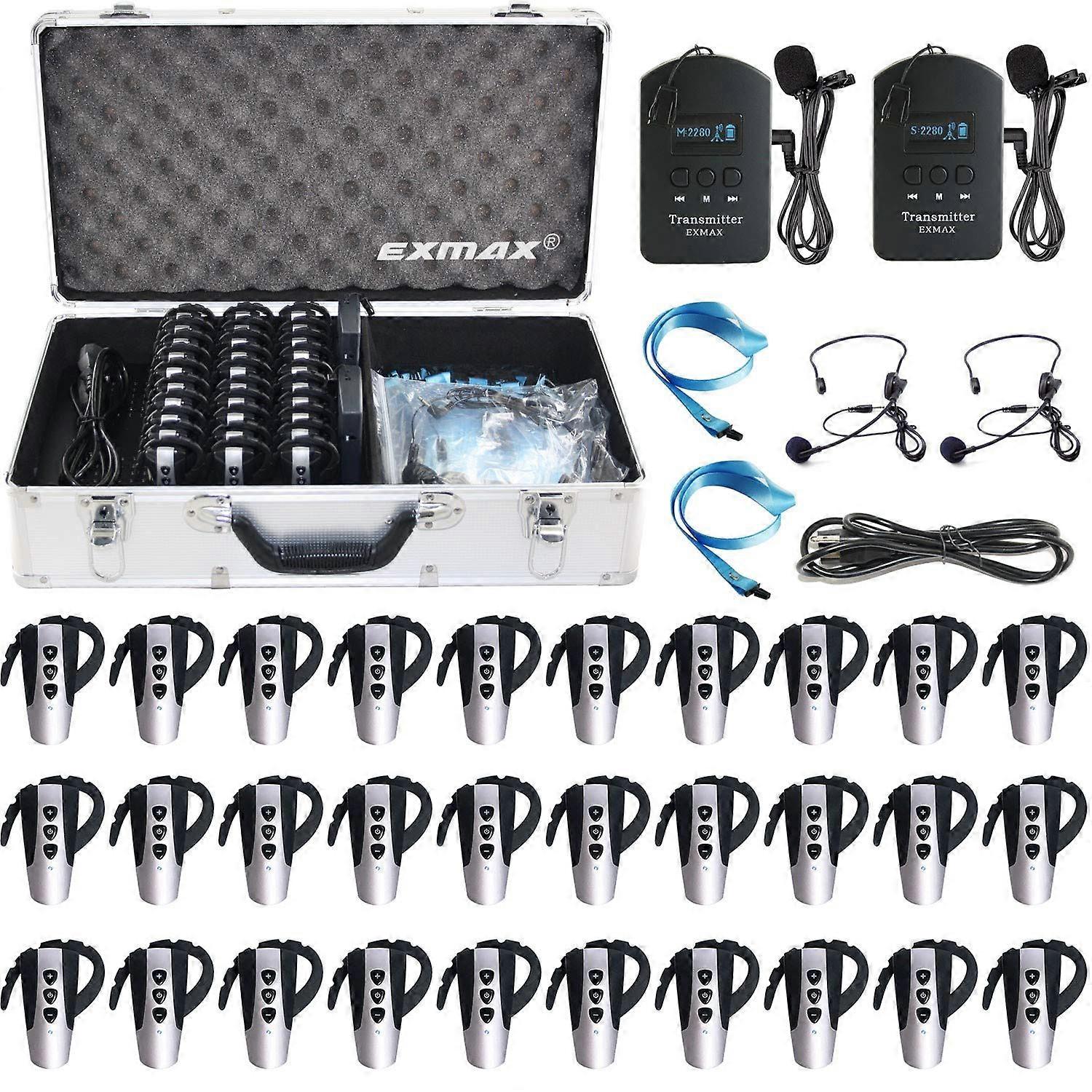 Wireless Tour Guide and Translation System 2.4G Dual Transmitter 492ft Range 30 Receivers for Events