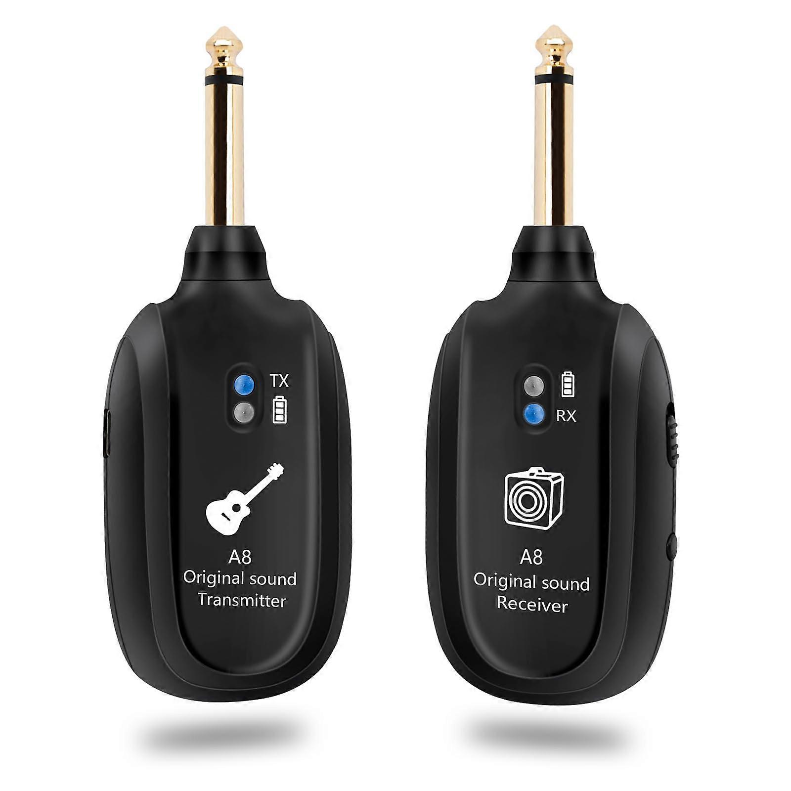 A8 Wireless Guitar System with Transmitter and Receiver, 2.4GHz, Low Latency, 24bit Audio, 100ft Range, Rechargeable for Electric Guitar and Bass