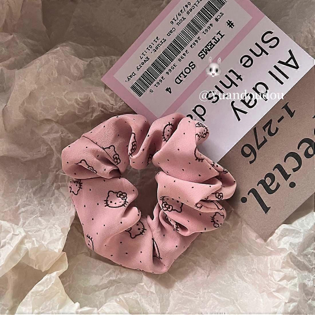 Sanrio Hello Kitty Y2K Hair Band Cartoon Kitty Cat Pink Sweet Hair Band Elastic Large Intestine Type Hair Tie Girls Hair Rope