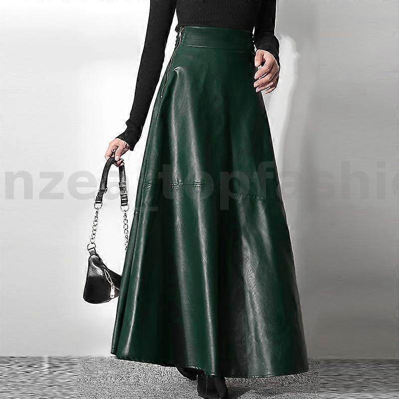 ZANZEA Womens A-Line Zipper Party Prom Faux Leather Party Dresses Maxi Skirt