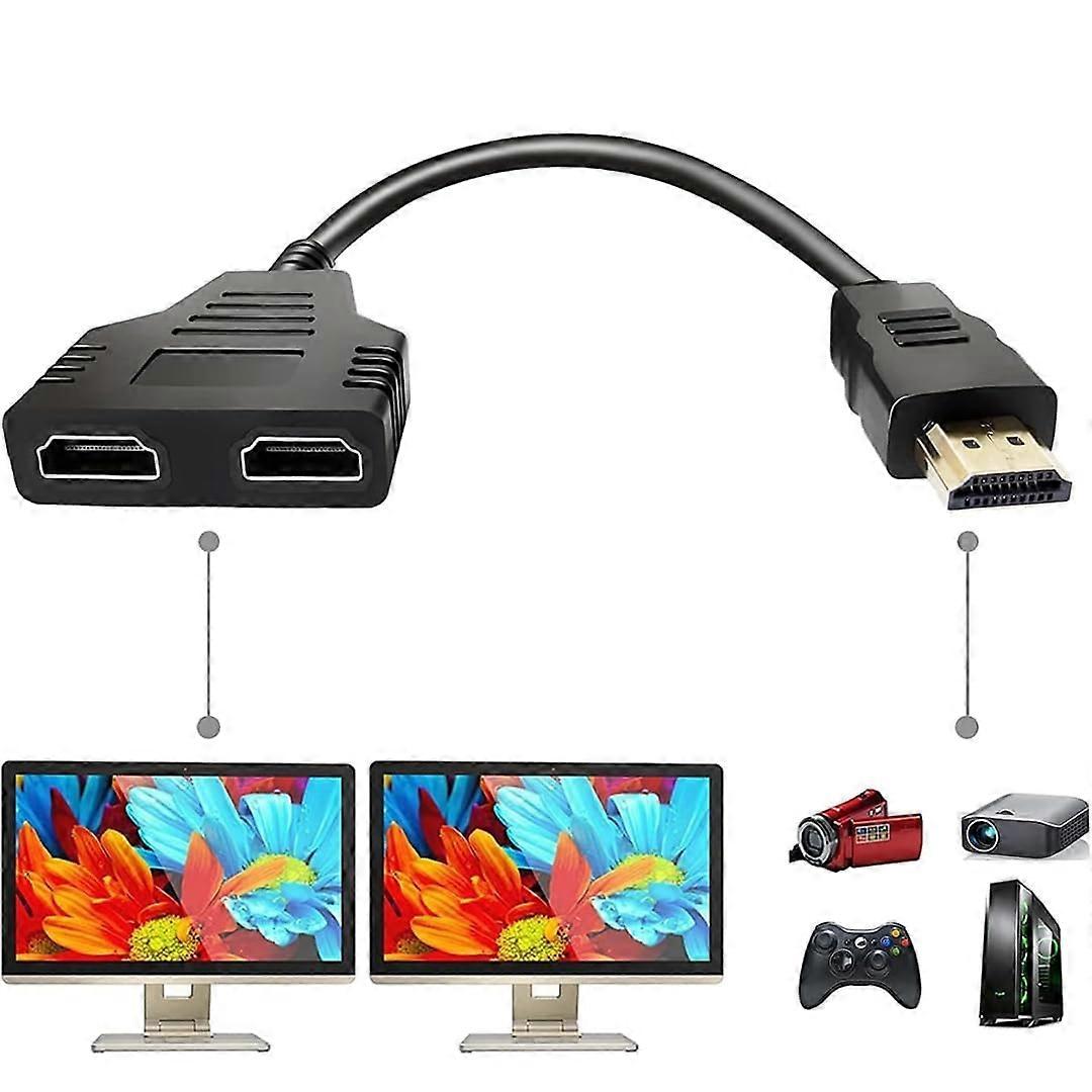 HDMI Splitter 1 In 2 Out 1080p Adapter Cable for Dual Monitors, TV, Laptop, DVD, Projector