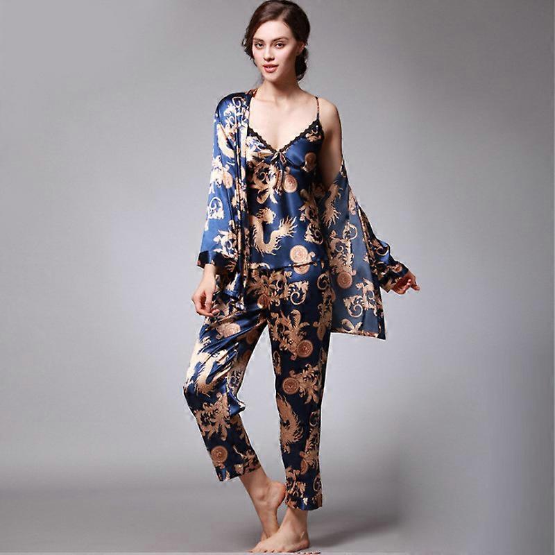 NEW Sexy Womens Silk Satin Pajamas 3pc Sleepwear&Robes Nightdress Nightgown P101