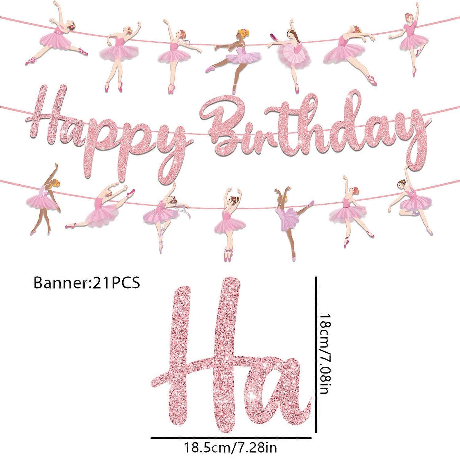 Pink dancing girl birthday decorations, banners, hanging ornaments, background banners, and girl birthday arrangements