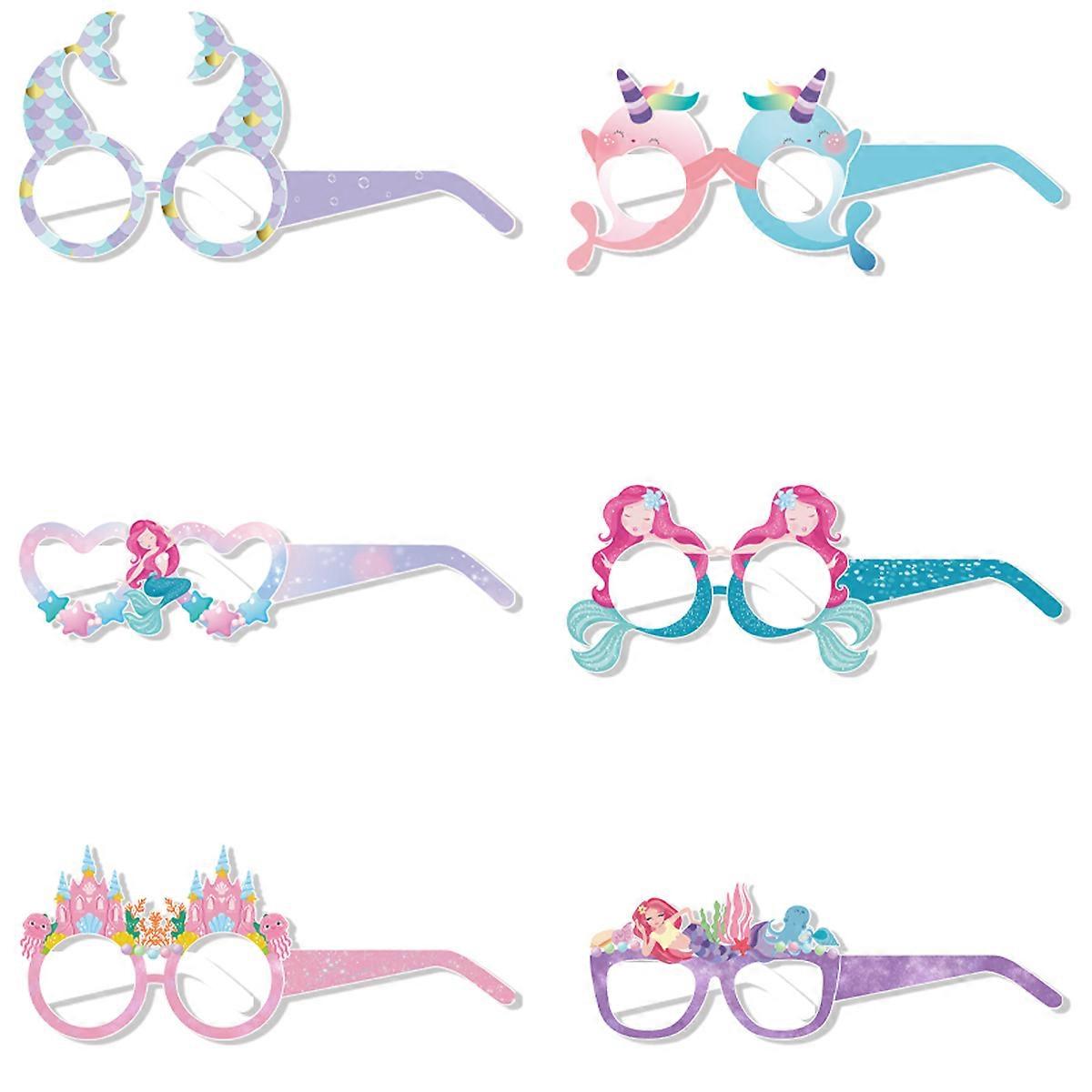 12pcs Mermaid Party Decoration Mermaid Themed Paper Eyeglasses Summer Beach Photo Booth Props for girl Birthday Party Dress Up