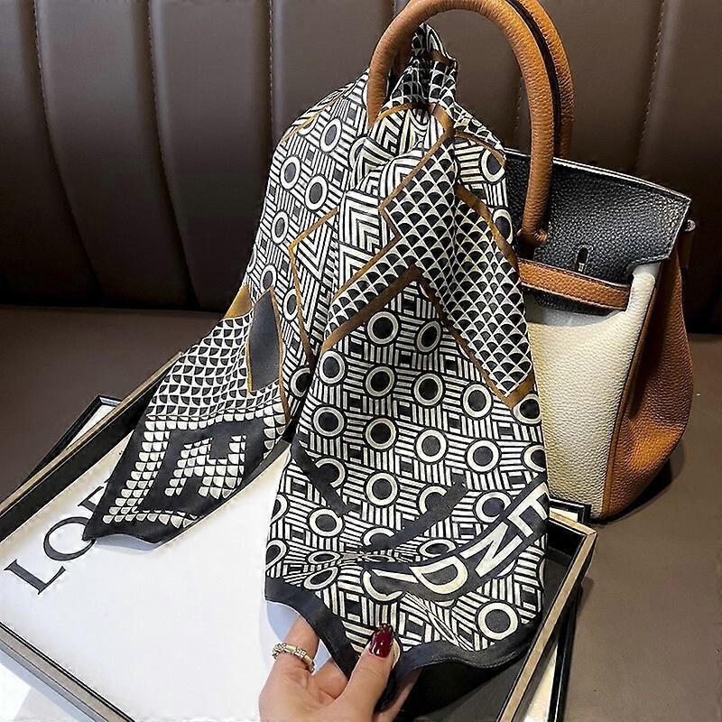 100% Silk Mulberry 26" Square Scarf Women Neckerchief Wrap Black Geometric Check