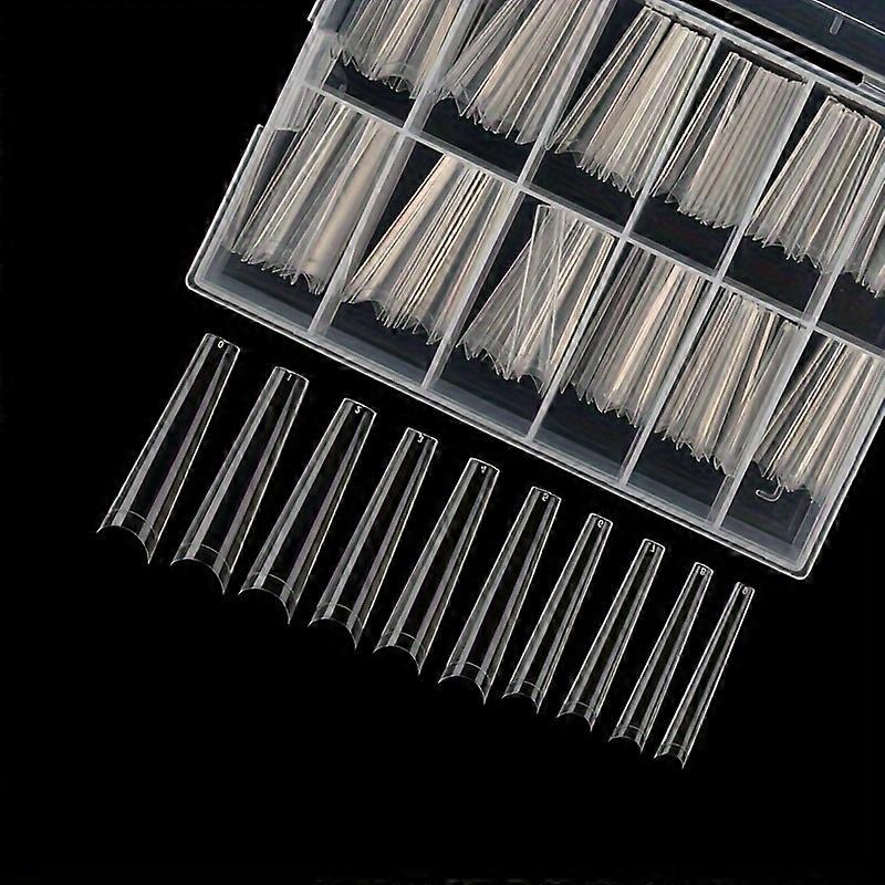 240Pcs Nail Art Set, Finished C-Type Rhinestone Tubular Nails, Cowboy Nails, Extended French False Nails, with Box Packaging