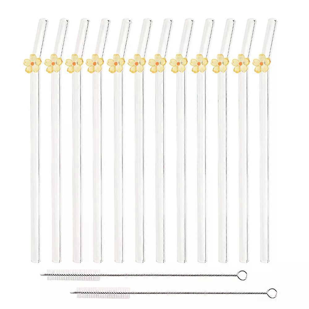 14Pcs High Borosilicate Glass Straws Set Flower Drinking Straw Set with Brush Milk Shake Coffee Cocktail Straw Bar Drinkware