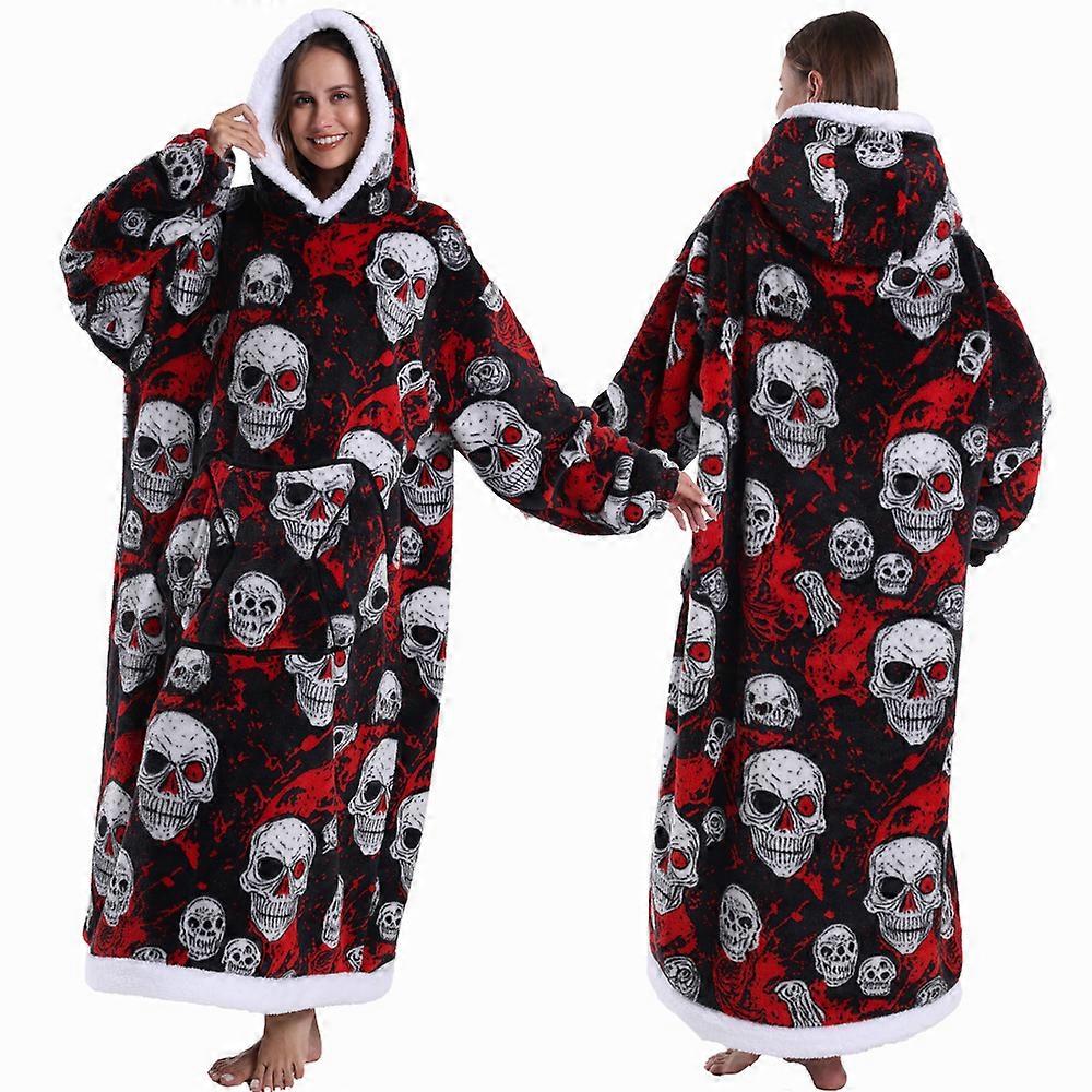 Men Women Wearable Blankets Winter Plush Skull Pumpkin Warm Hoodies Adult Long Sleeved Oversized Sweatshirt Giant TV Blanket