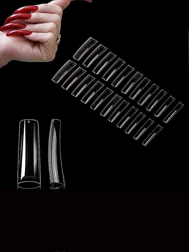 550 Pieces of Long Curved Nail Tips, Transparent Natural French Coffin Nail Tips, Suitable for Professional Acrylic Nails, Half Cover Square