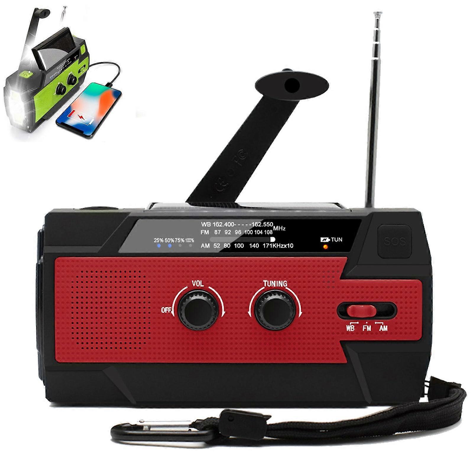 Emergency Weather Radio with NOAA Alerts, Solar and Hand Crank Power, 4000mAh Power Bank, Red