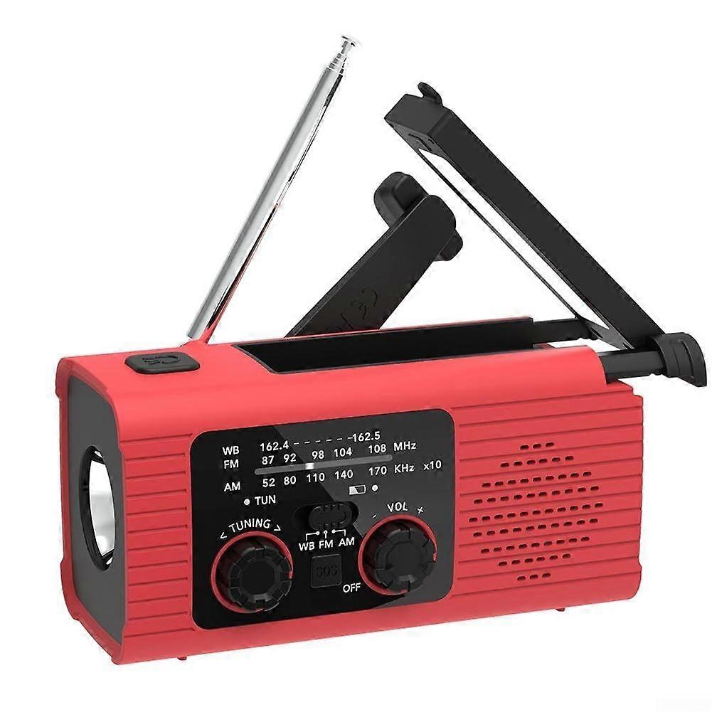 Solar Hand Crank Emergency Weather Radio 4000mAh AM FM LED Flashlight SOS Alarm Waterproof Red
