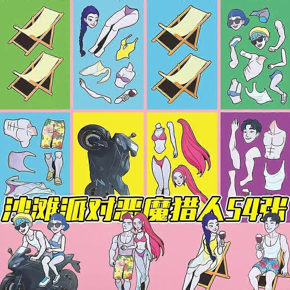 2025 New 8pcs Kpop DemonHunter peripheral creative beach party edition dress up collage fun children's puzzle toy stickers