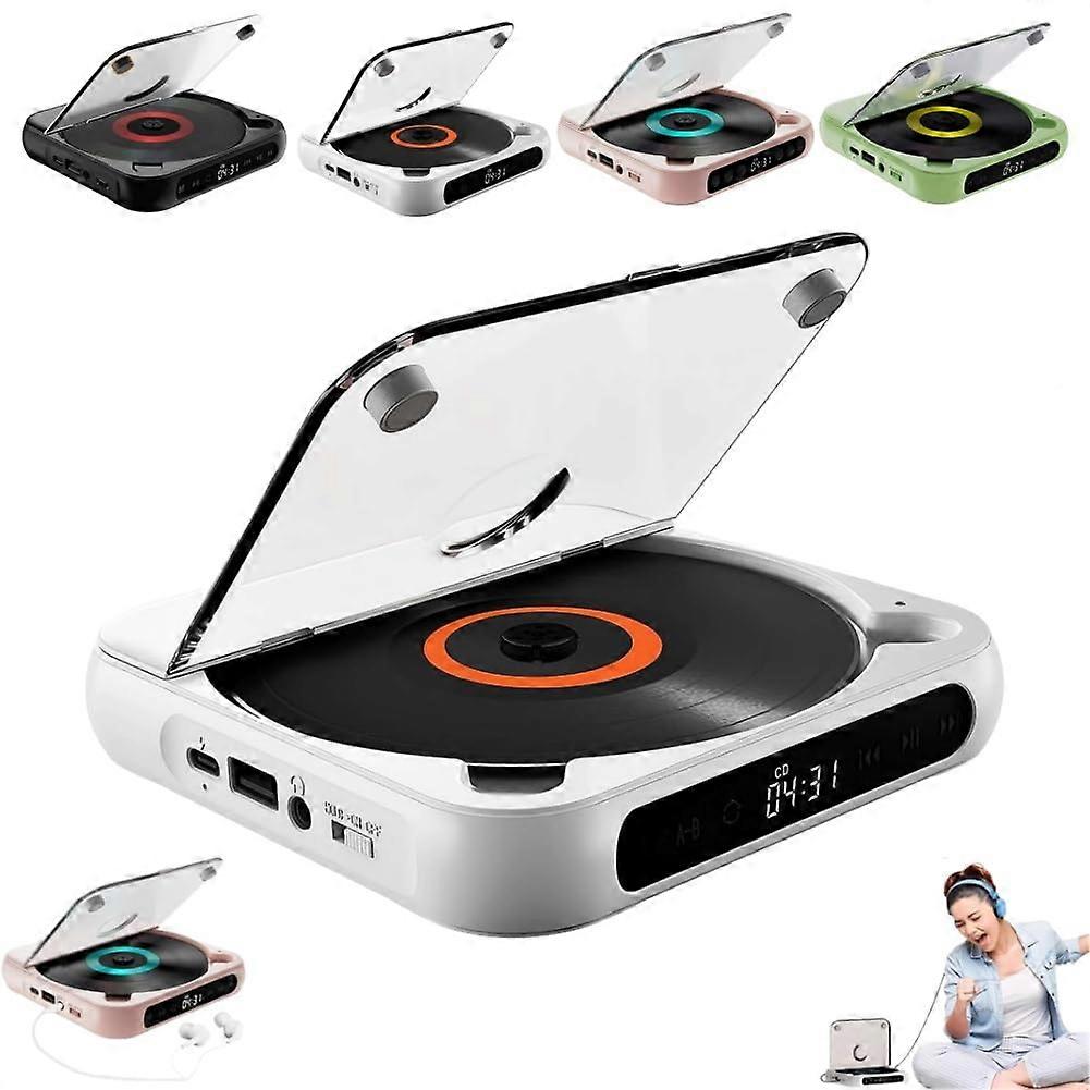 Portable BluetoothCompatible CD Player HiFi Sound, Wireless & Wired Rechargeable Battery, Compact Travel White