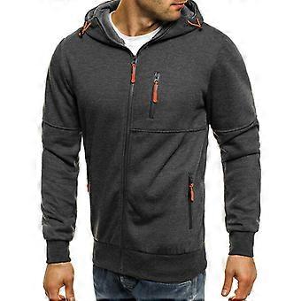 Men Sports Hoodies Jacquard Zipper Hooded Jacket Long Sleeve Sweatshirt Top Grey