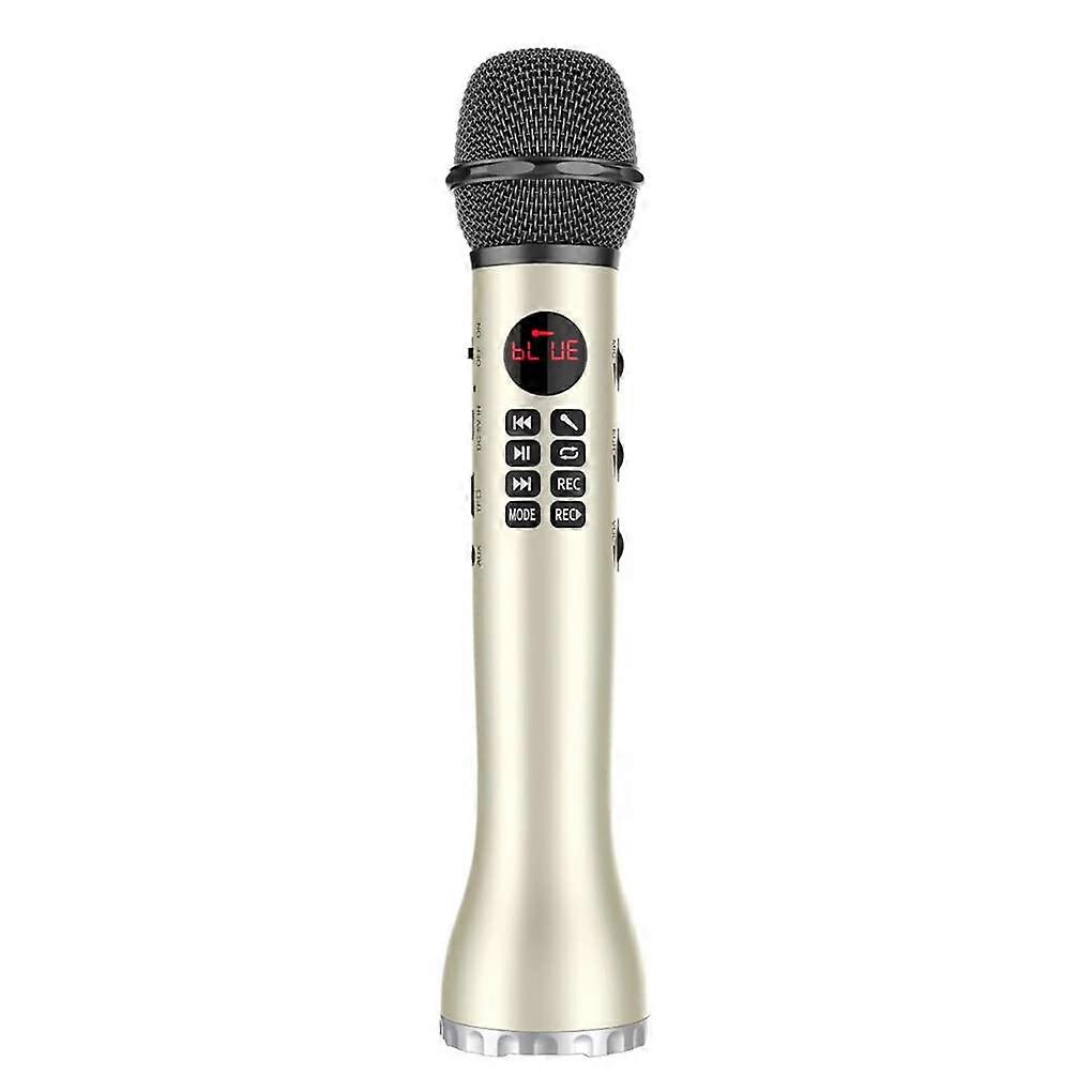 K Song Microphone Wireless Bluetooth Compatible Speaker LED Display Noise Reduction Singing Recorder Mic Gold