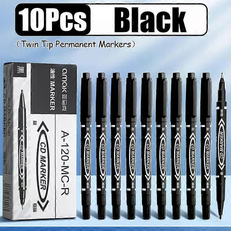 10Pcs Double Tip Permanent Markers Pens Waterproof Oily Fine Tip Black Painting Marker Graffiti Marking Pens School Supplies