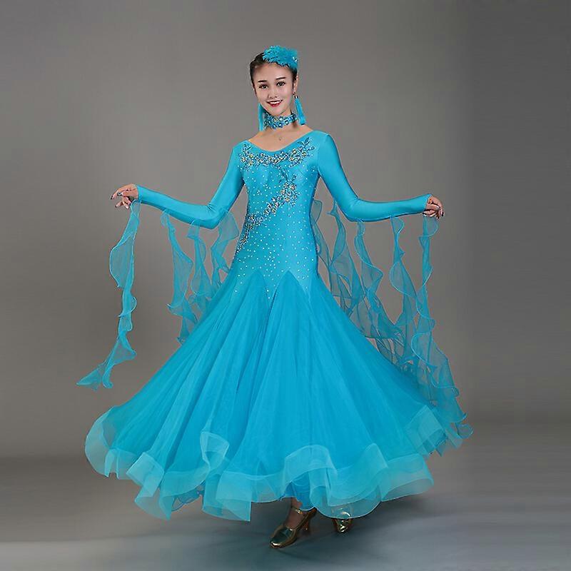 Latin Ballroom Dance Dress Modern Salsa Waltz Standard Long Dress#C09 10 Colors