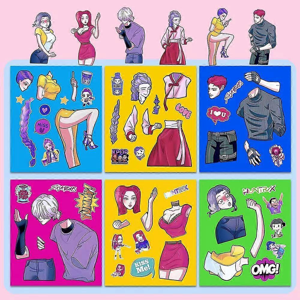 New 6pcs KPop Demon Hunters Cartoon DIY Stickers Bulk Anime Doodle Decals for Luggage Water Bottles Friend's Gift