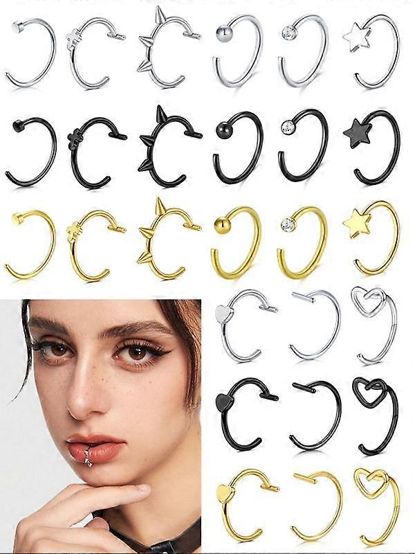 Adjustable Fake Nose Ring Lip Stud, Star Heart Design, Unisex Stainless Steel Clip on Jewelry, No Piercing Needed, Casual Style
