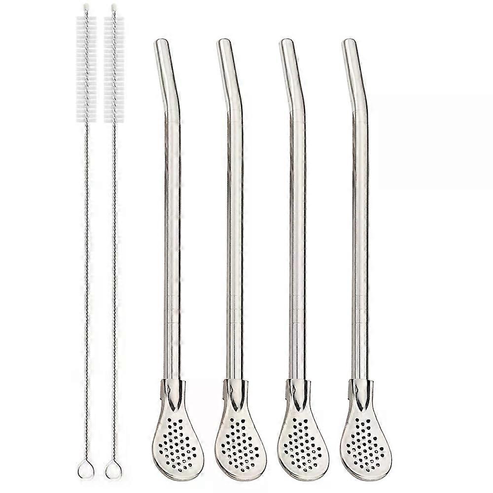 4/6/10/12Pcs/set Tea Straws Stainless Steel Drinking Straw Spoon Tea Filter Metal Washable for Coffee Cocktail Bar Accessories