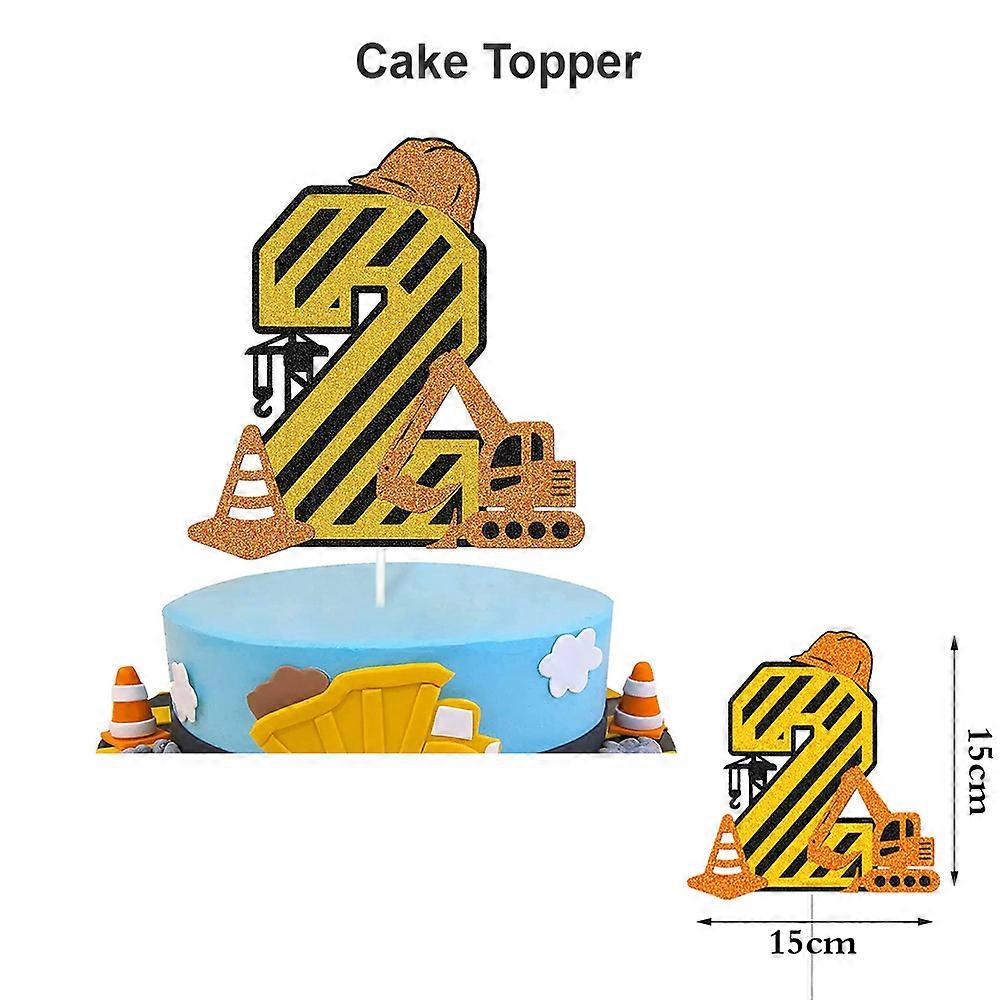 Construction Excavator 1 2 3 4th Birthday Cake Toppers Decor Digging Machine Vehicle Balloon Kids Boy Engineering Party Supplies