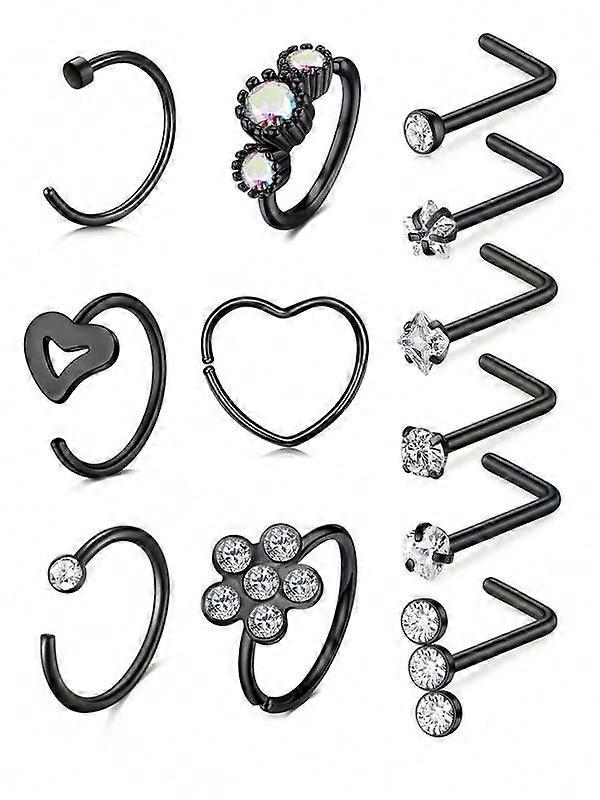 Cute Heart & Flower Decor Nose Rings, Rhinestone Decor L Shaped Nose Hoop Rings, Stainless Steel Nose Rings for Women & Men, Body Piercing J