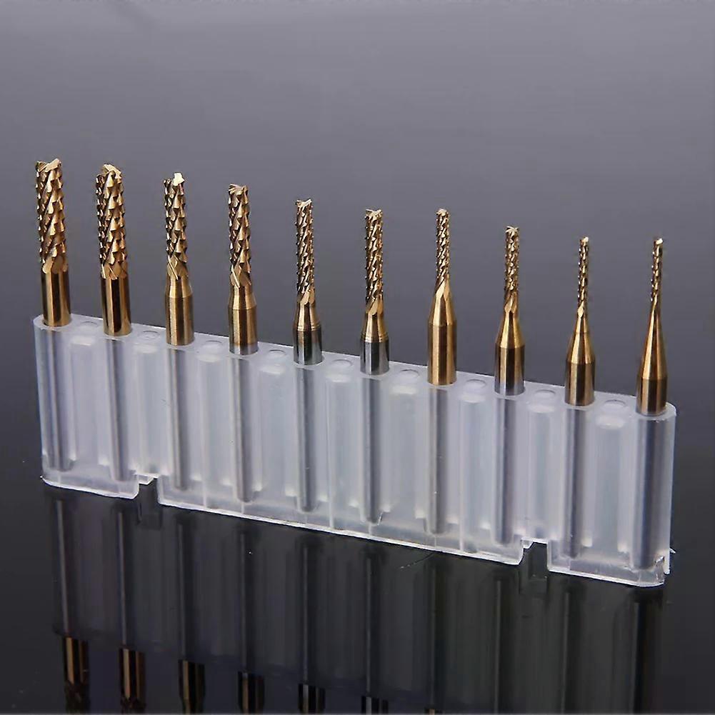 10pcs Carbide End Mill Set 1mm-3mm CNC Router Bits for Metal, PCB, Plastic Milling, 3.175mm Shank, Gold Coated Cutting Edge