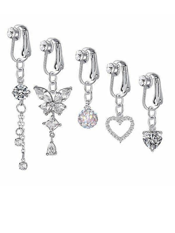 Fashionable Fake Belly Button Rings, Rhinestone Heart Butterfly Dangle Non Piercing Stainless Steel Navel Clips, Body?Pendants?Jewellery?Cha
