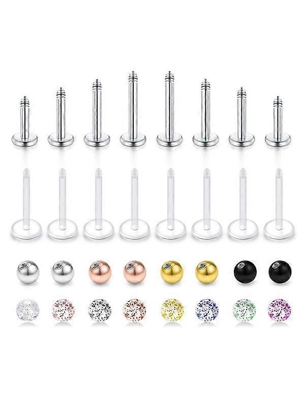 16pcs/set Unisex Punk Style Beaded Design Lip Studs, Stainless Steel Trendy Lip Studs & Stud Earrings, Fashionable Body Jewelry for Women &