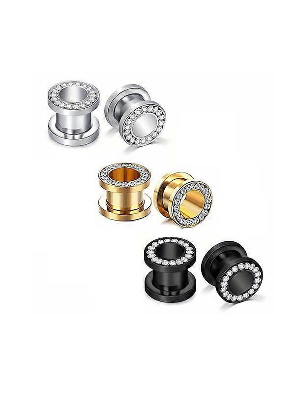 Stainless Steel Screw Ear Plugs Tunnels, Artificial Zircon Decor Ear Gauges, Punk Style Hollow Ear Expander, Body Piercing Jewelry for Men &