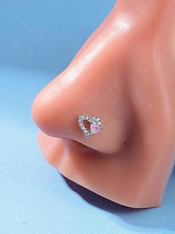 Cute Heart Shaped Nose Stud, Shiny CZ Decor Nose Ring, Fashionable Body Jewelry for Women & Girls, Trendy All-match & Exquisite Jewelry for